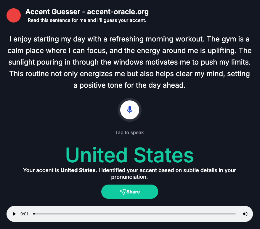 Ready to enhance your communication skills and master your accent with the AI Accent Guesser? Join us at The Accent Oracle and unlock your potential!